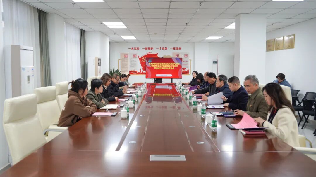 为推动党建与业务深度融合,以组织共建赋能招生就业协同发展,11月25日,西南民族大学招生就业处党支部与我校直属第二党支部举行党建结对共建活动。西南民族大学招生就业处党支部书记、招生就业处处长沈剑锋,副处长冯波、谭雪梅;我校党委书记、省政府督导专员喇明清,党委委员、执行校长段渝,副校长叶宜胜出席会议,相关职能部门负责人及党员代表参加会议。会议由我校直属第二党支部书记、财务处处长李香美主持。